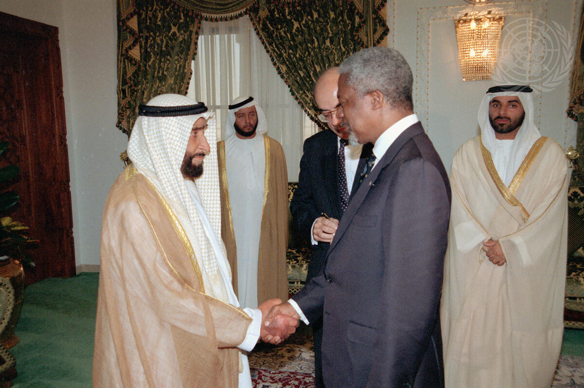 Kofi Annan, Secretary-General of the United Nations, meets with Sheikh Zayed bin Sultan Al-Nahyan, President of the United Arab Emirates.