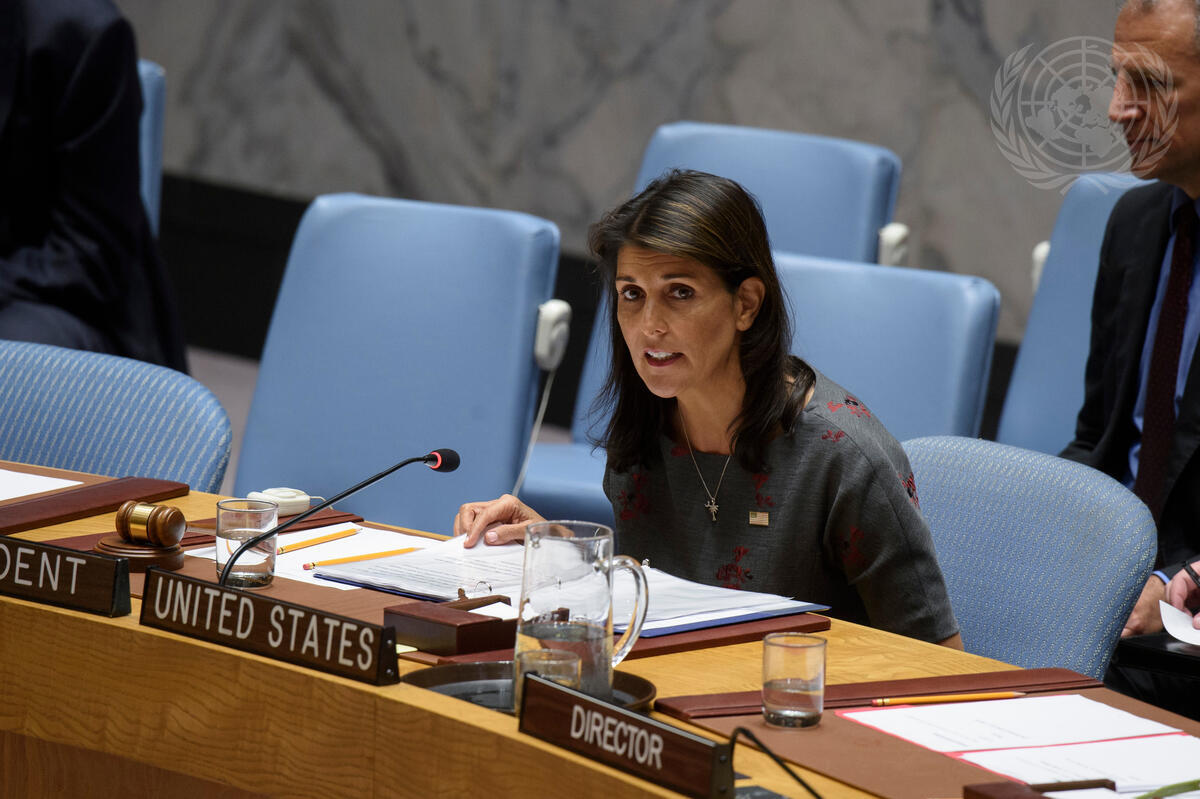Nikki R. Haley, Permanent Representative of the United States to the UN and President of the Security Council for the month of September, chairs the Security Council meeting considering the letter dated 13 March 2018 from the Permanent Mission of the United Kingdom to the United Nations.