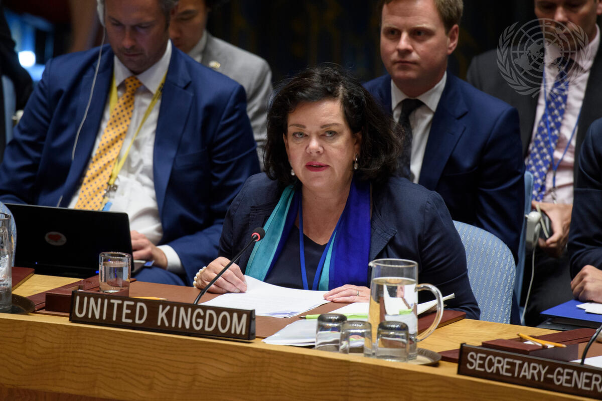 Karen Pierce, Permanent Representative of the United Kingdom to the UN, addresses the Security Council meeting considering the letter dated 13 March 2018 from the Permanent Mission of the United Kingdom.
