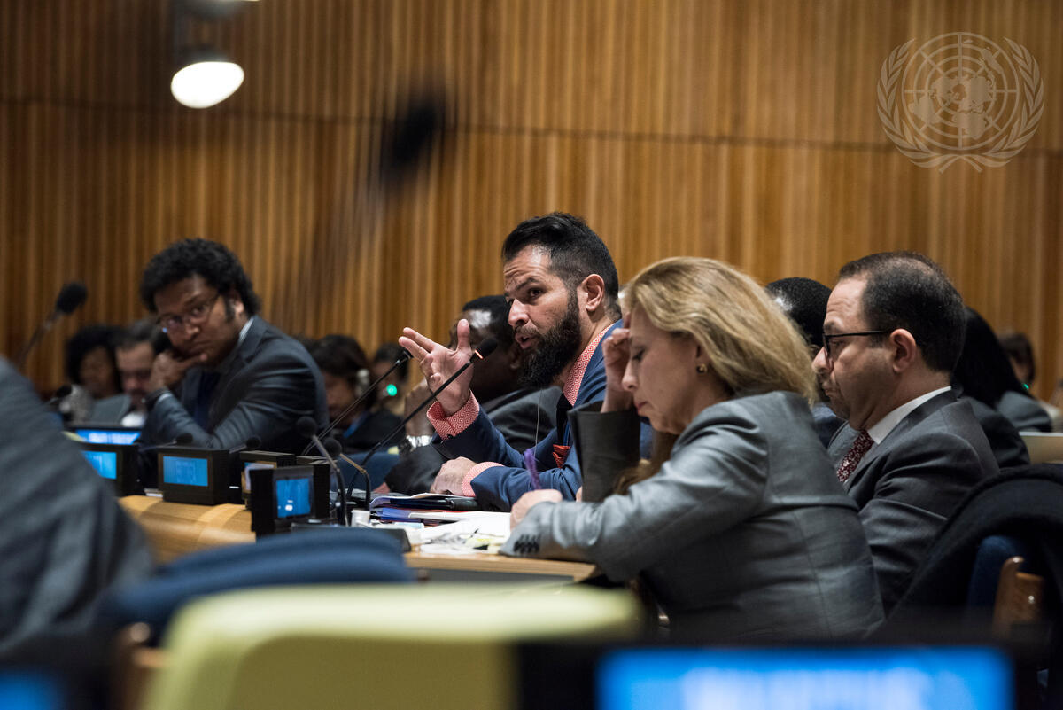 Rubén Armando Escalante Hasbún (centre), Permanent Representative of El Salvador to the United Nations, addresses the Ambassadorial Meeting of the Group of 77 (G77).