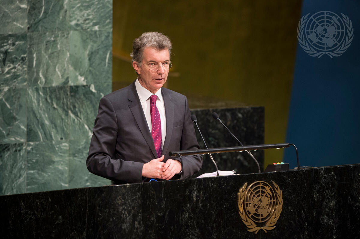 Christoph Heusgen, Permanent Representative of Germany to the UN, introduces a draft General Assembly resolution titled, “The situation in Afghanistan”.