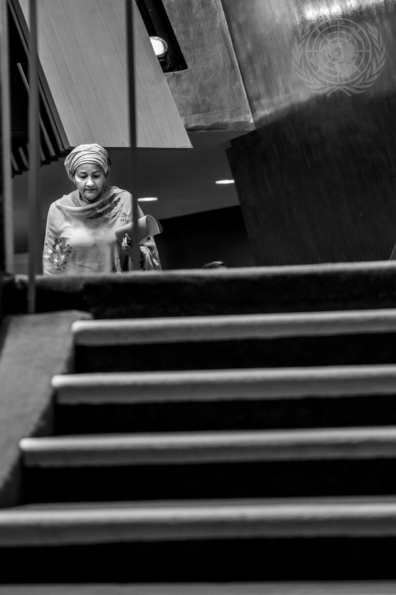 Deputy Secretary-General Amina Mohammed arrives in the General Assembly Hall on the fifth day of the General Assembly's seventy-third general debate.