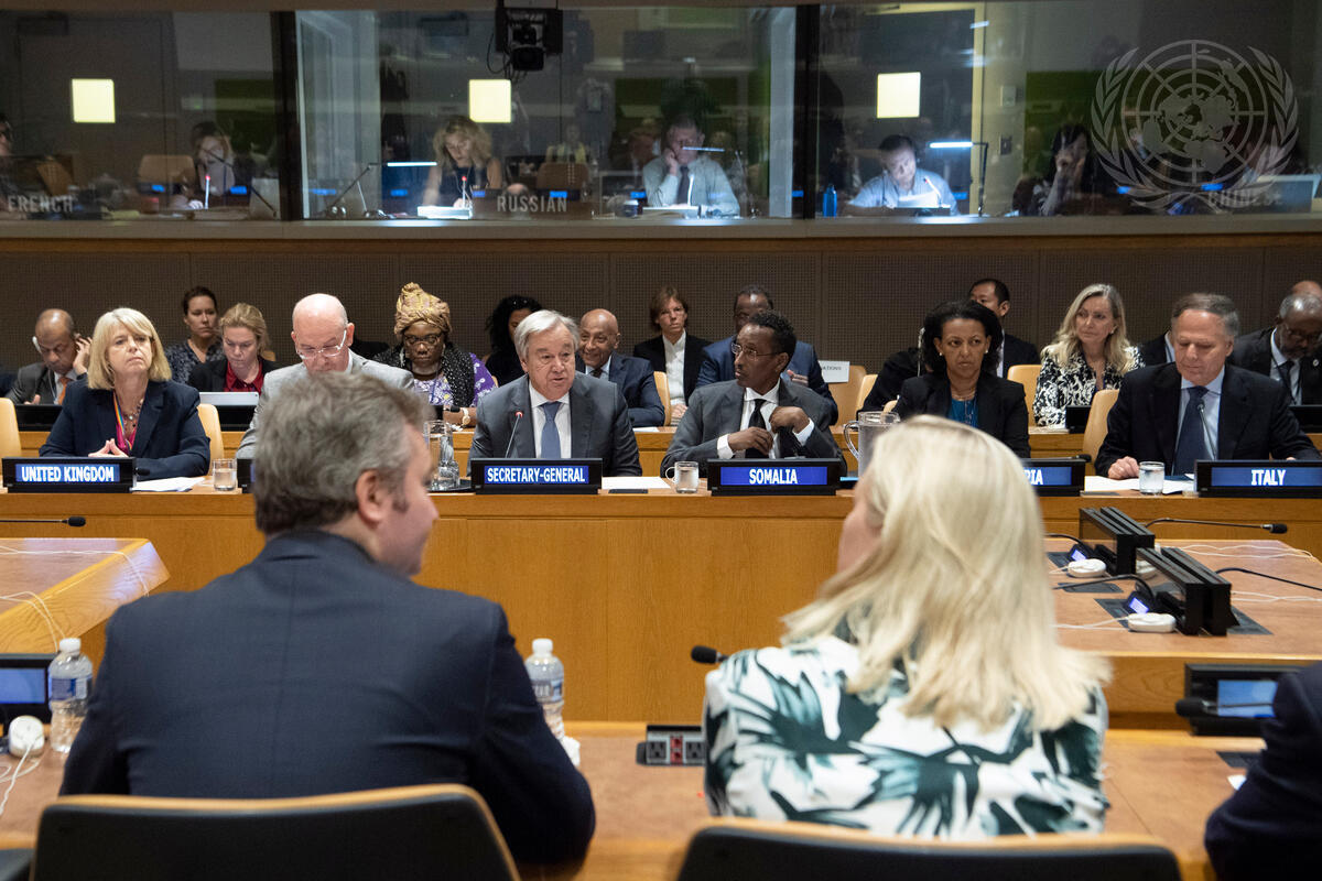 Secretary-General António Guterres (centre left) makes remarks during a high-level meeting on Somalia, held on the margins of the general debate of the seventy-third General Assembly.