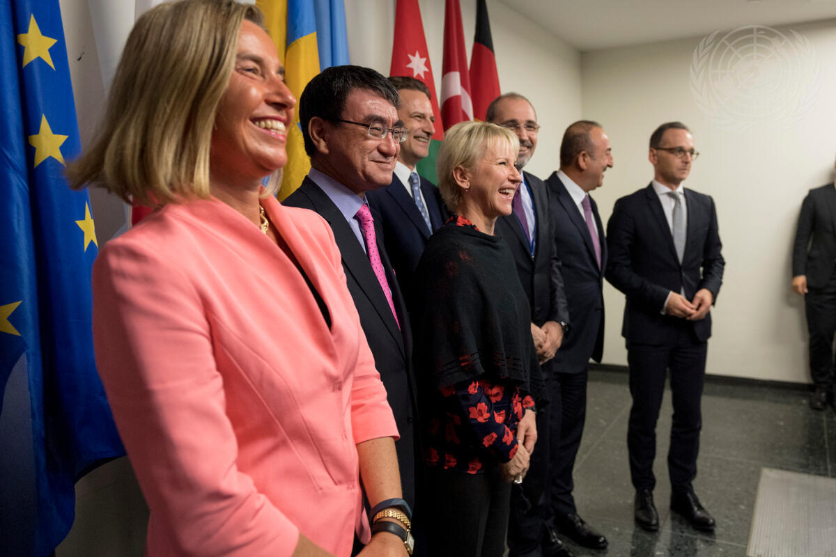 From left to right: Federica Mogherini, European Union High Representative for Foreign Affairs and Security Policy and Vice-President of the European Commission; Taro Kono, Minister for Foreign Affairs of Japan; Margot Wallström, Minister for Foreign Affairs of Sweden; Pierre Krähenbühl, Commissioner General for UNRWA; Ayman H. Safadi, Minister for Foreign Affairs and Expatriates of the Hashemite Kingdom of Jordan; Mevlüt Çavusoglu, Minister for Foreign Affairs of the Republic of Turkey; and Heiko Maas, Federal Minister for Foreign Affairs of Germany.