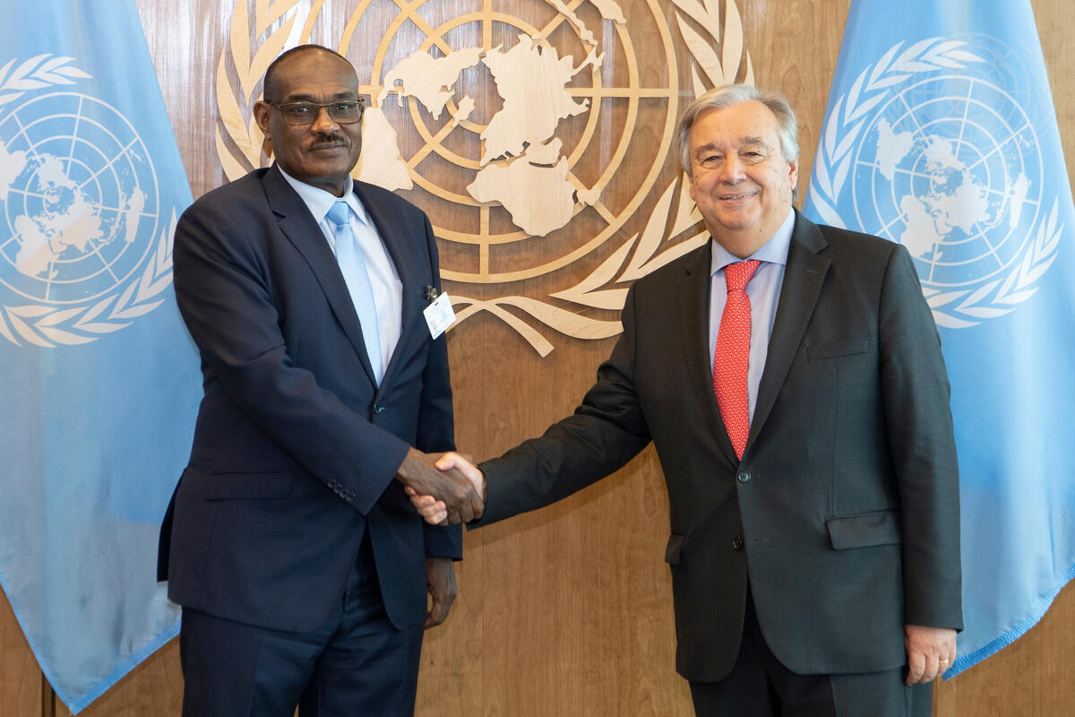 Secretary-General António Guterres (right) meets with Eldirdiri Mohamed Ahmed, Minister for Foreign Affairs of the Republic of the Sudan.
