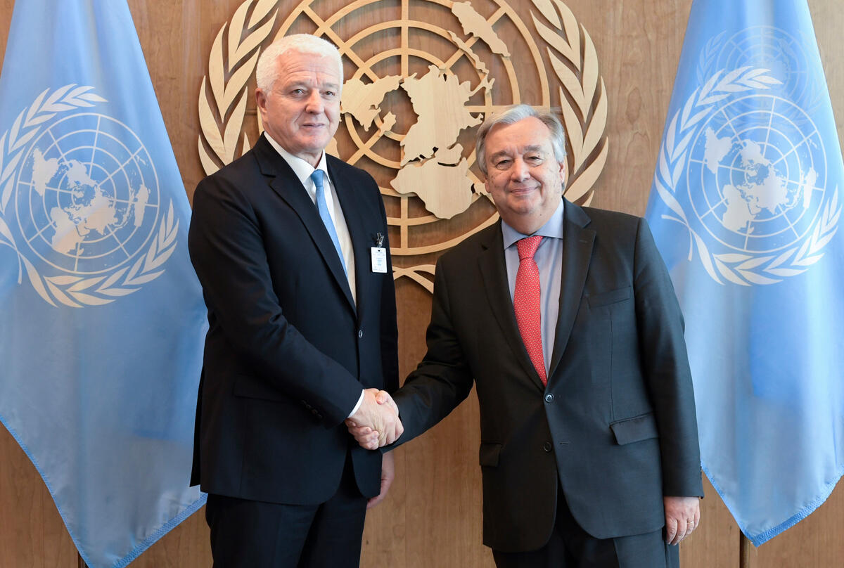 Secretary-General António Guterres (right) meets with Duško Markovic, Prime Minister of Montenegro.
