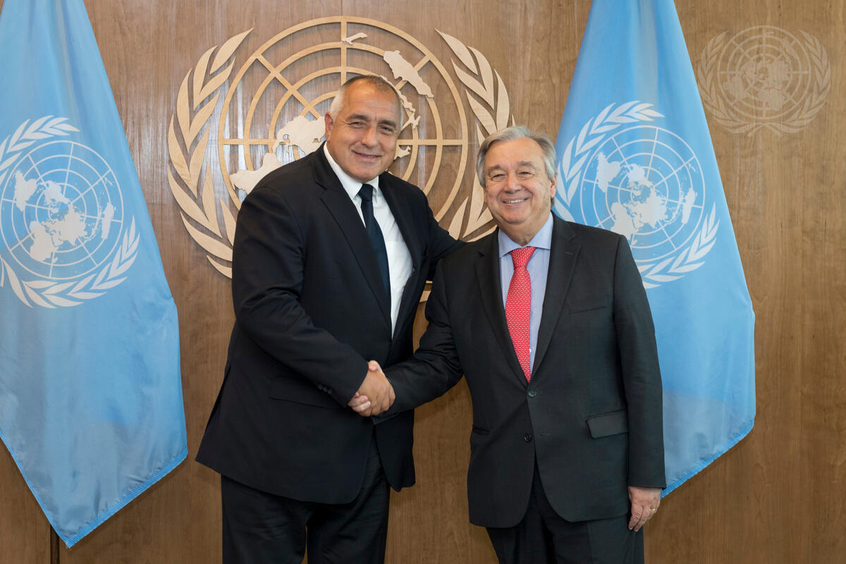 Secretary-General António Guterres (right) meets with Boyko Borissov, Prime Minister of the Republic of Bulgaria.