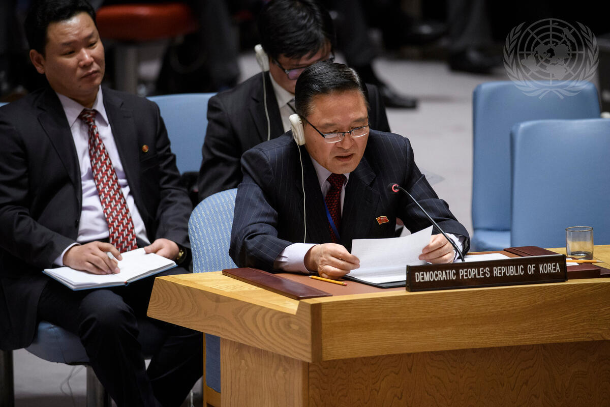 Ja Song Nam, Permanent Representative of the Democratic People’s Republic of Korea (DPRK) to the United Nations, addresses the Security Council meeting on the issue of non-proliferation.