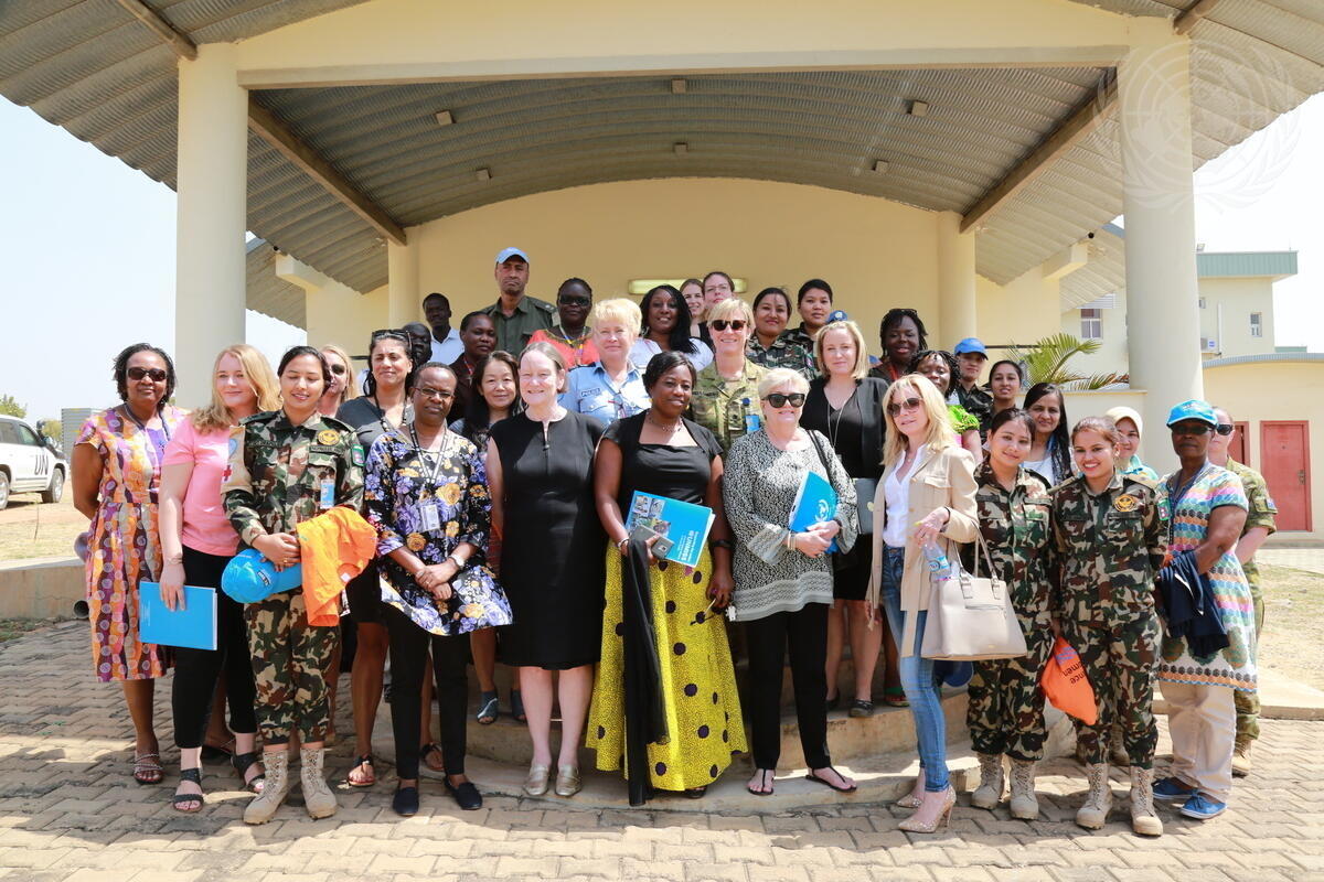 Jane Connors (front row, third from left), United Nations advocate for the rights of victims of sexual exploitation and abuse, poses for a group photo with staff members serving with the UN Mission in South Sudan (UNMISS), during her visit to the country.