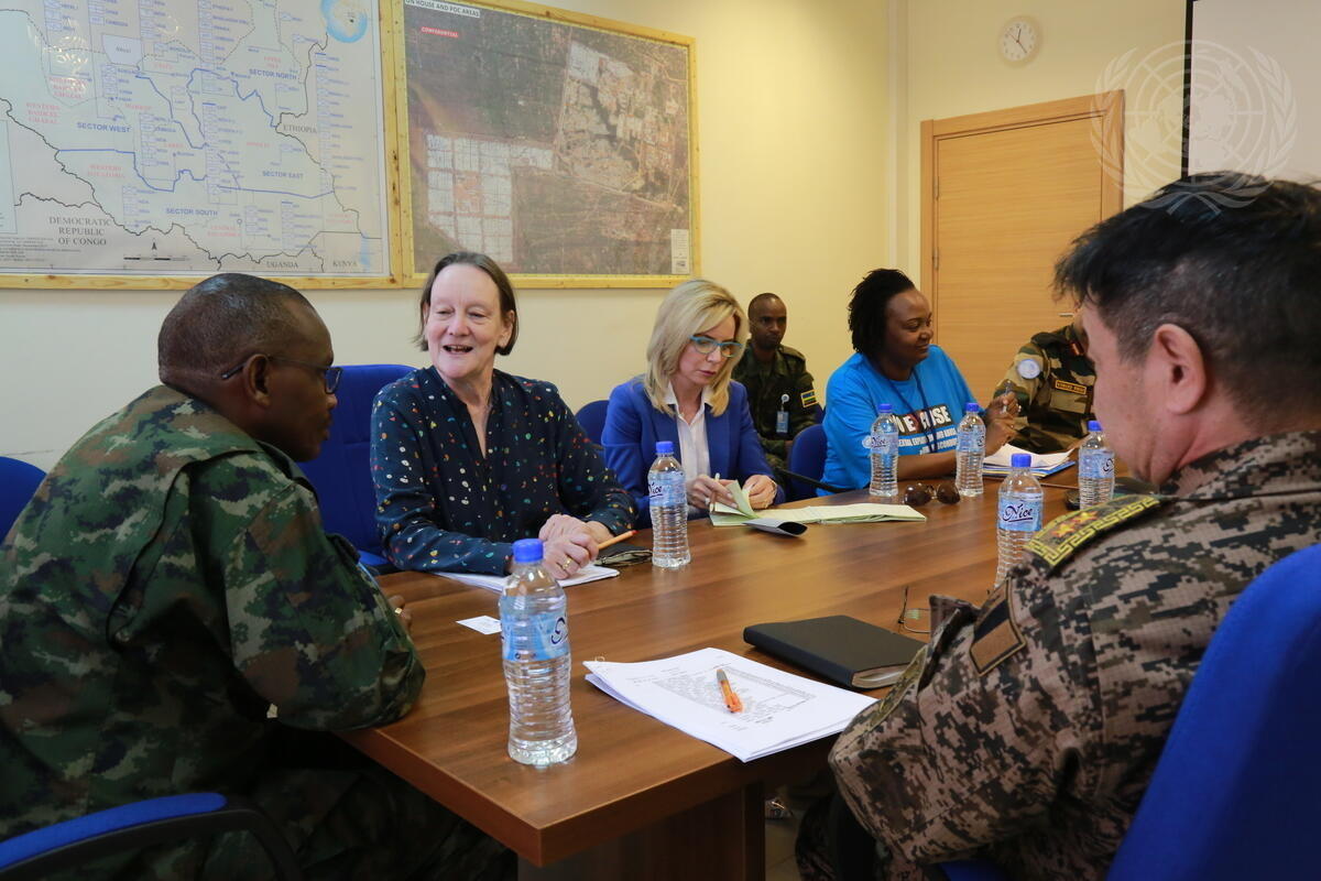 Jane Connors (second from left), United Nations advocate for the rights of victims of sexual exploitation and abuse, meets with military representatives of peacekeepers serving with the UN Mission in South Sudan (UNMISS) during her visit to the country.