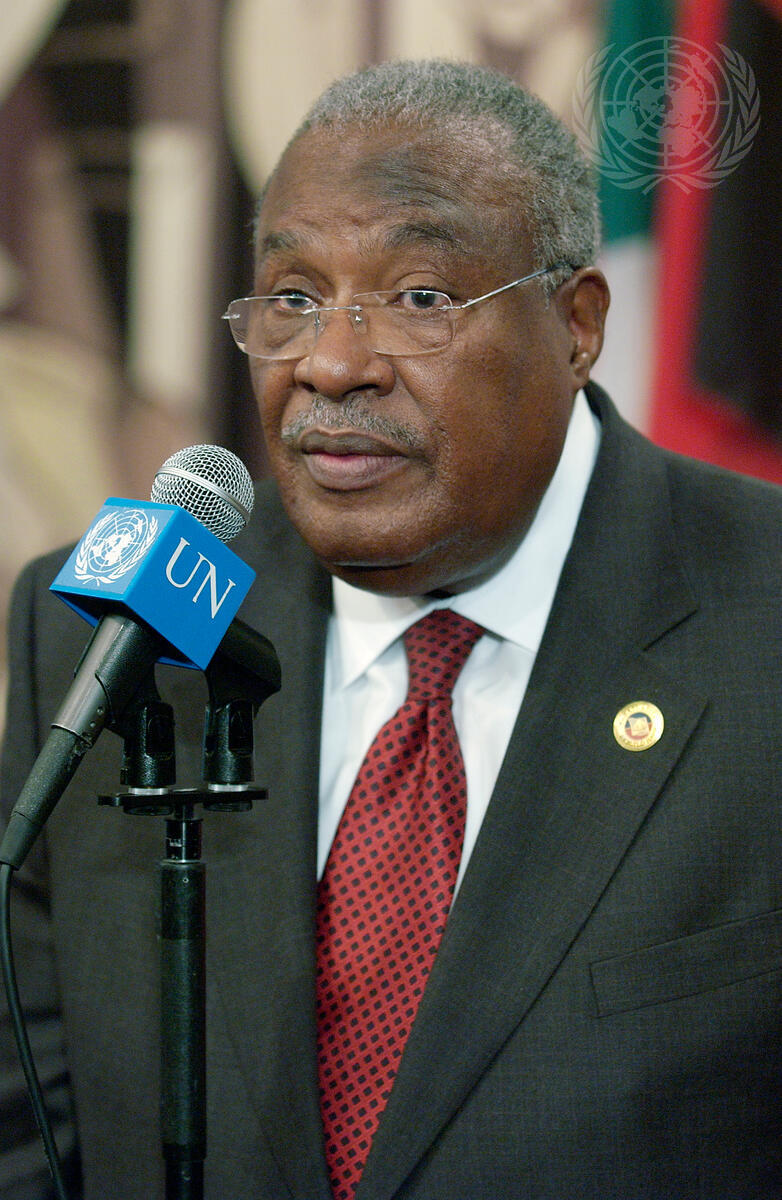 Gerard Latortue, Prime Minister of Haiti, briefs the media outside Security Council of the chamber.