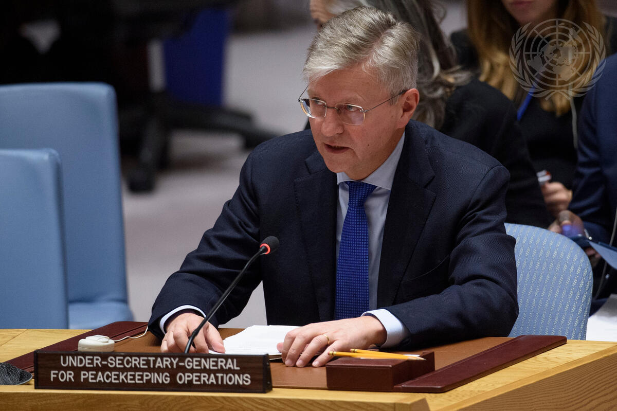 Jean-Pierre Lacroix, Under-Secretary-General for Peacekeeping Operations, briefs the Security Council meeting on peace and security in Africa.