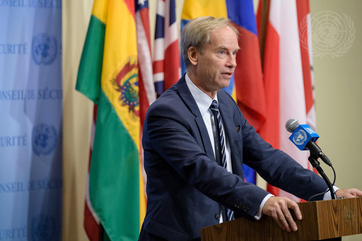 Olof Skoog, Permanent Representative of Sweden to the United Nations, speaks to journalists after Security Council consultations on the 1701 report, 1718 Committee and other matters.
