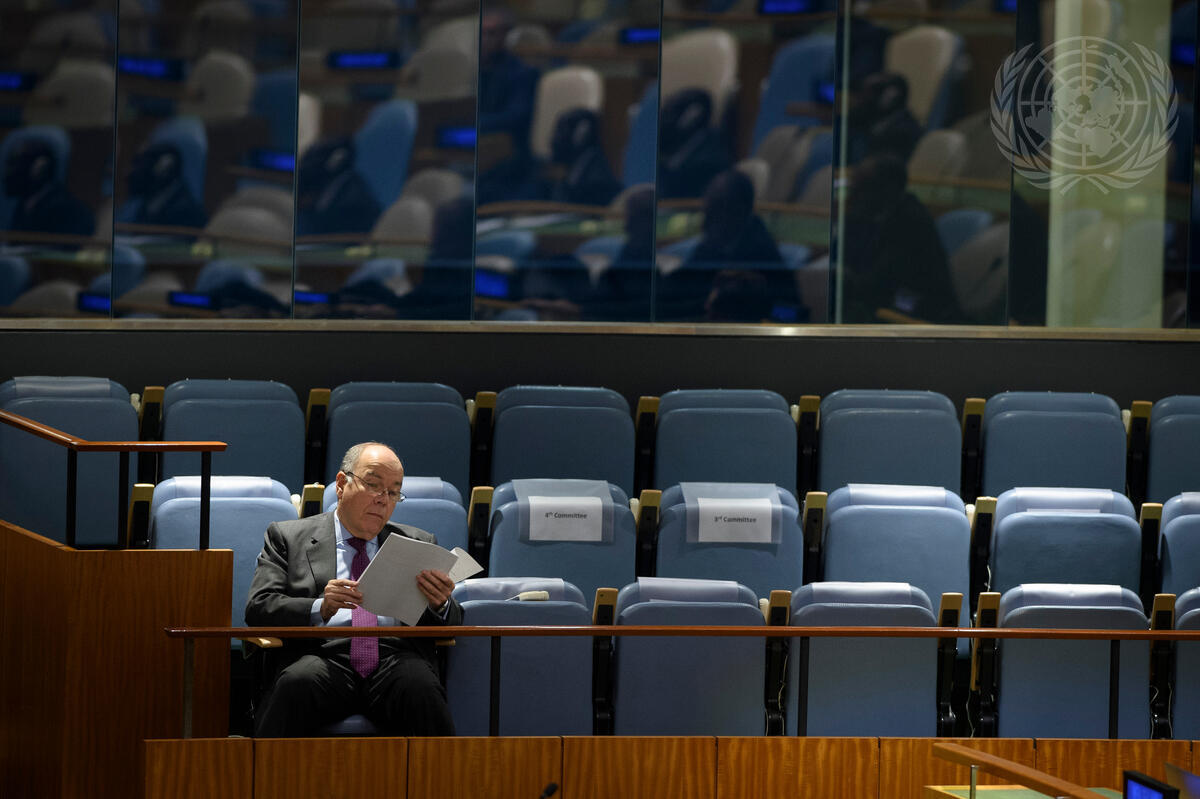 Mauro Vieira, Permanent Representative of Brazil to the UN, reviews his statement before the General Assembly meeting on the question of equitable representation on and increase in the membership of the Security Council and other matters related to the Council.