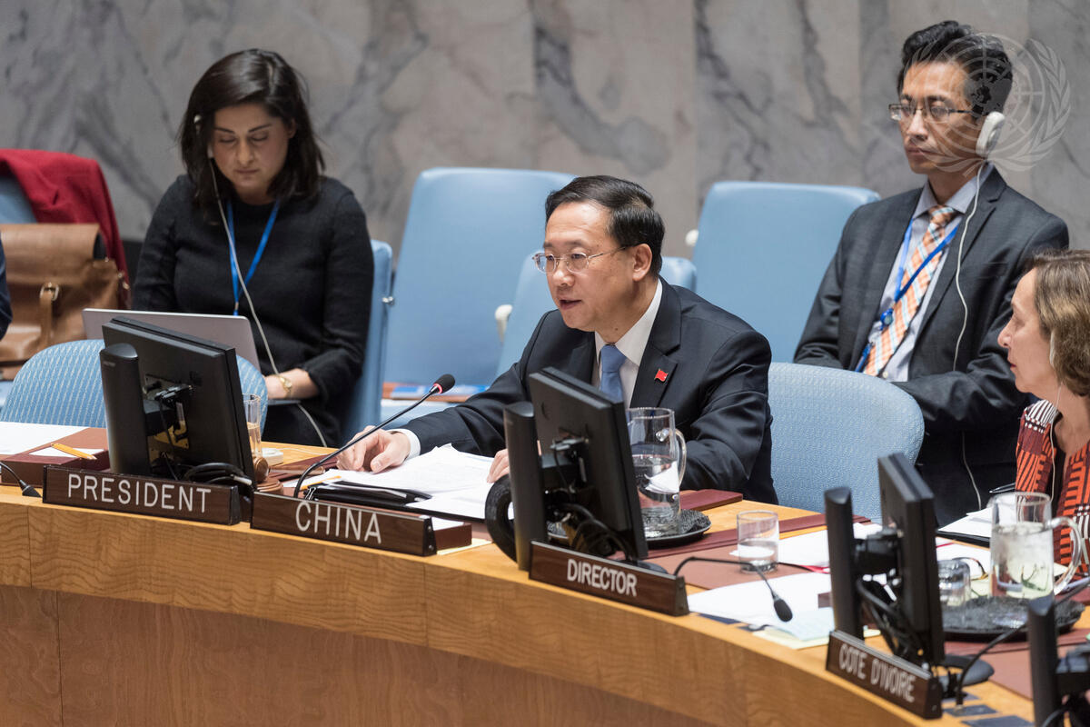 Ma Zhaoxu, Permanent Representative of China to the United Nations and President of the Security Council for the month of November, chairs the Security Council meeting on the situation in the Middle East, including the Palestinian question.