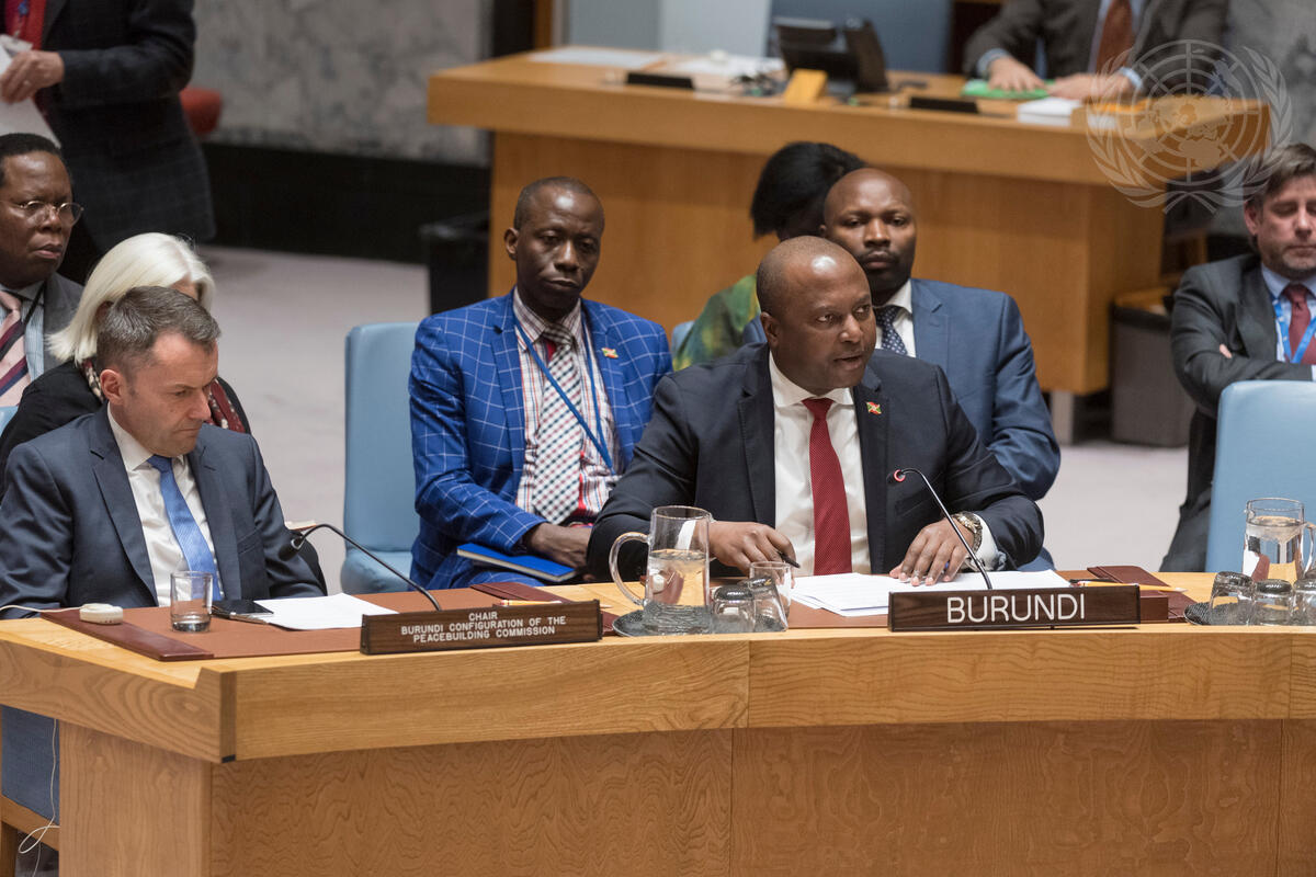Albert Shingiro (right), Permanent Representative of Burundi to the United Nations, addresses the Security Council meeting on the situation in his country.