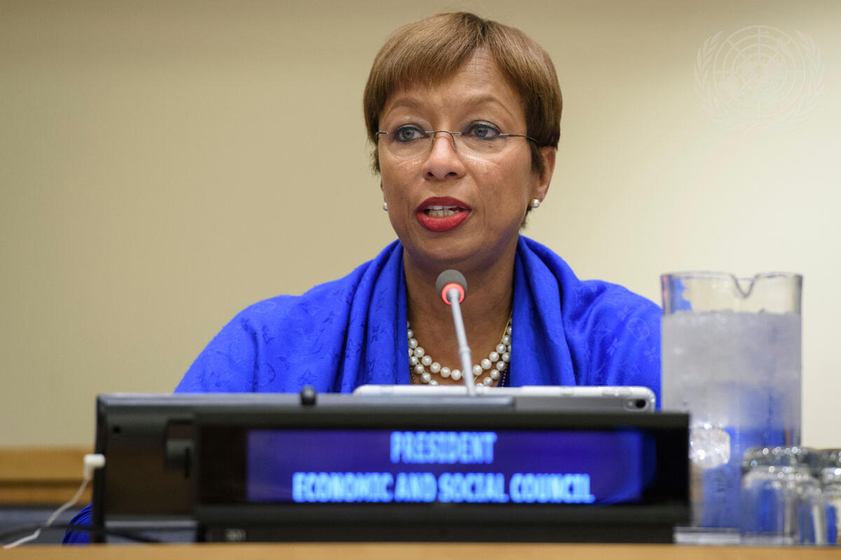 Inga Rhonda King, seventy-fourth President of the Economic and Social Council (ECOSOC), addresses the joint meeting of the ECOSOC and the Peacebuilding Commission at the ambassadorial level on ""Linkages between climate change and challenges to peacebuilding and sustaining peace in the Sahel"".