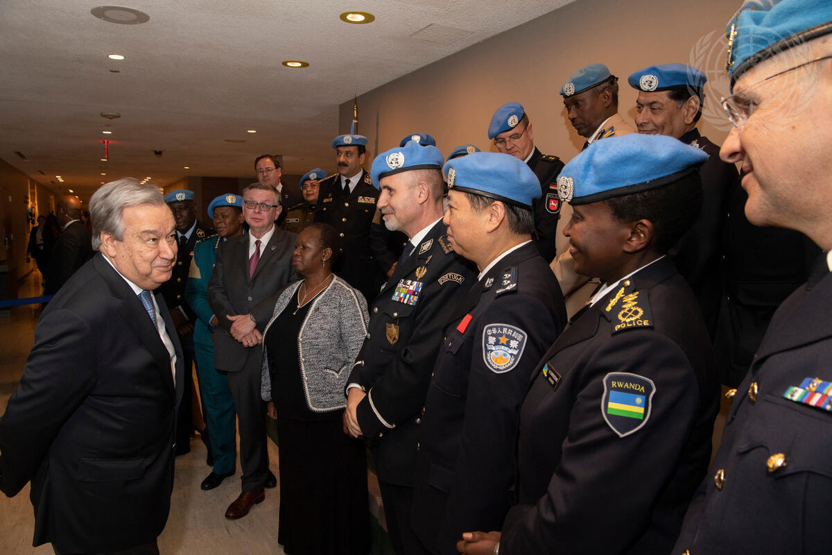 Secretary-General António Guterres (left) meets with the Heads of United Nations Police on the occasion of United Nations Police Week.