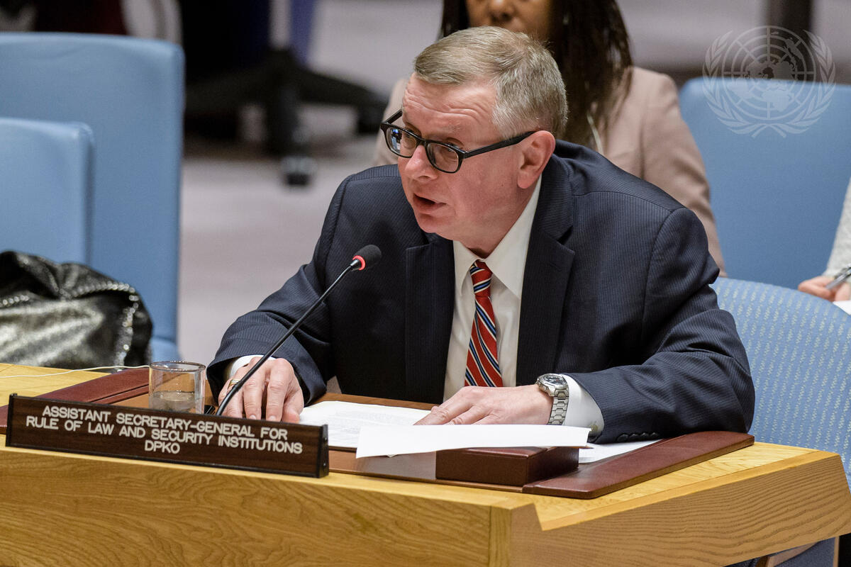Alexander Zouev, Assistant Secretary-General for Rule of Law and Security Institutions for the Department of Peacekeeping Operations, addresses the Security Council meeting on the situation in Liberia.
