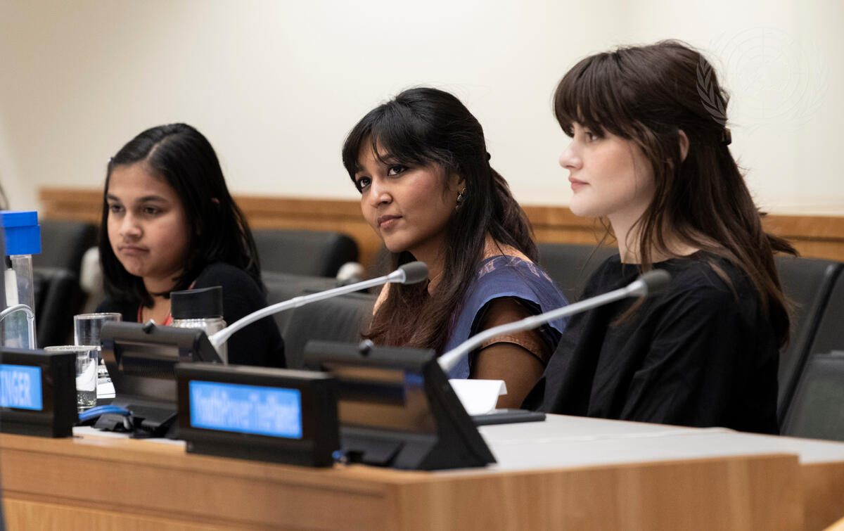 Panelists (left to right) Gitanjali Rao, Sona Sridhar and Lauren Singer, attends a special event entitled ""Youth Power the Planet: an SDG Activate Talk to Celebrate Earth Day"" on the occasion of International Mother Earth Day (22 April).