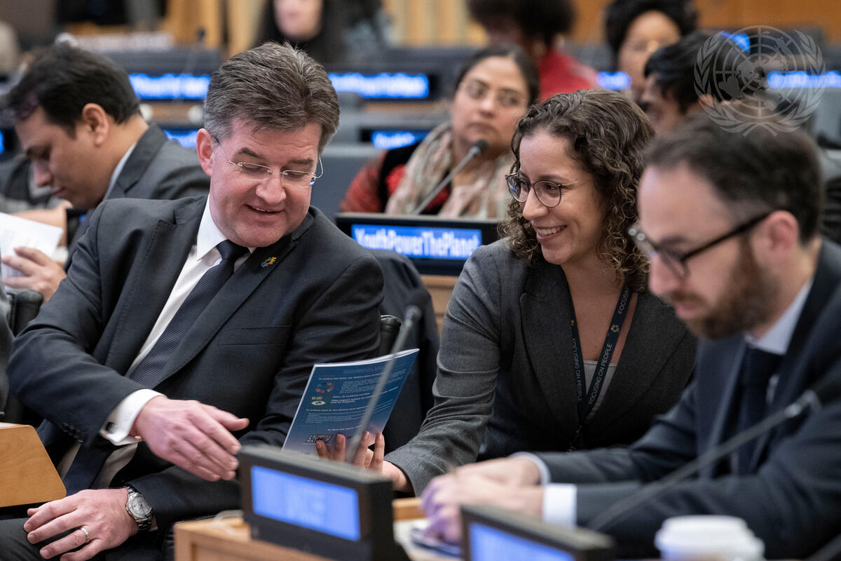 Miroslav Lajcák, President of the seventy-second session of the General Assembly, receives comic book during a special event entitled ""Youth Power the Planet: an SDG Activate Talk to Celebrate Earth Day"" on the occasion of International Mother Earth Day (22 April).