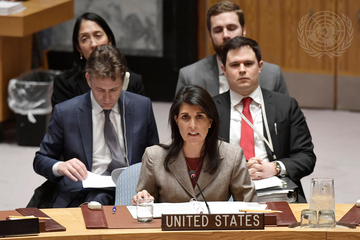 Nikki R. Haley, Permanent Representative of the United States to the UN, addresses the Security Council meeting on the situation in the Middle East.