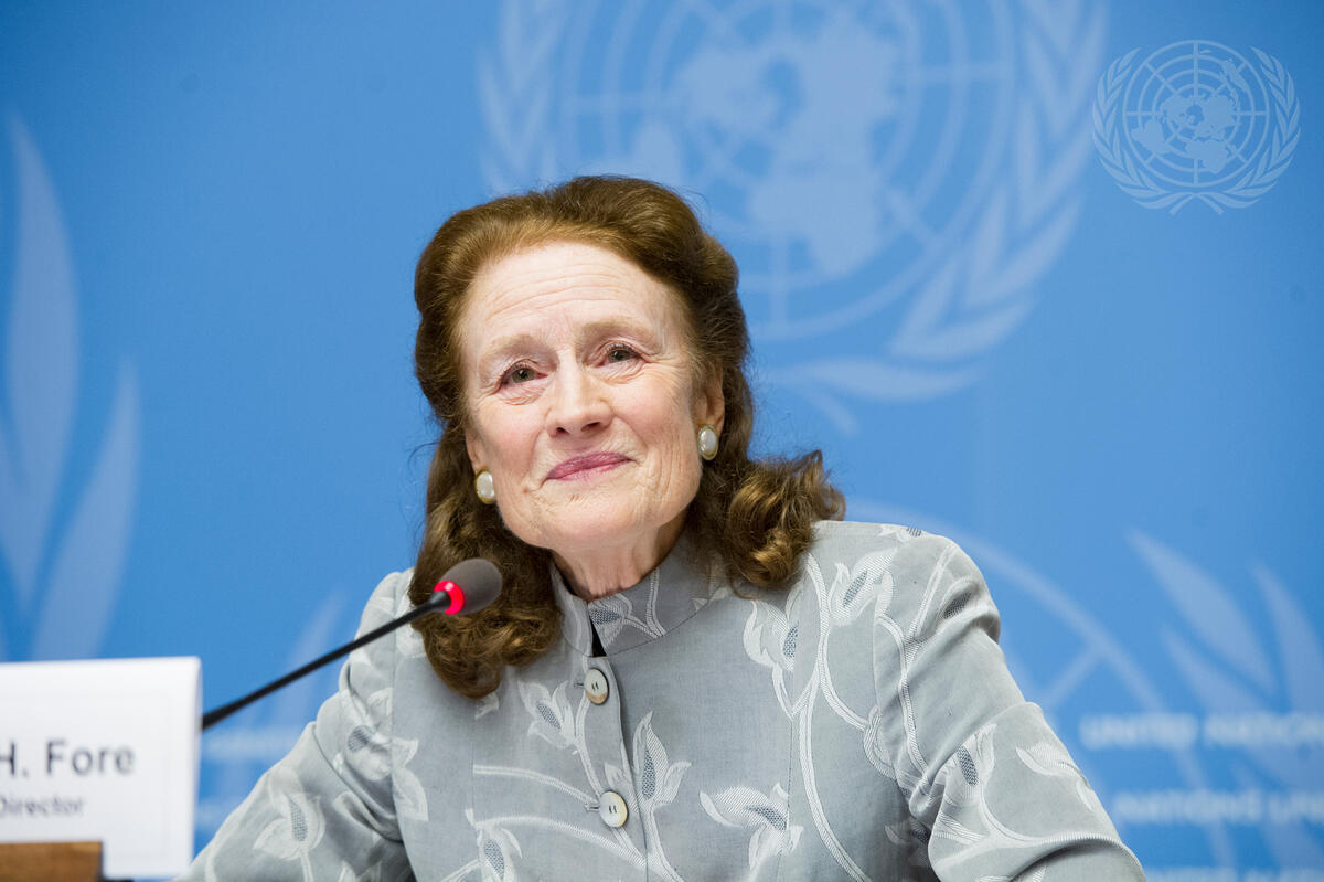 Henrietta H. Fore, new Executive Director of the United Nations Children's Fund (UNICEF), briefs the press at the Palais des Nations.