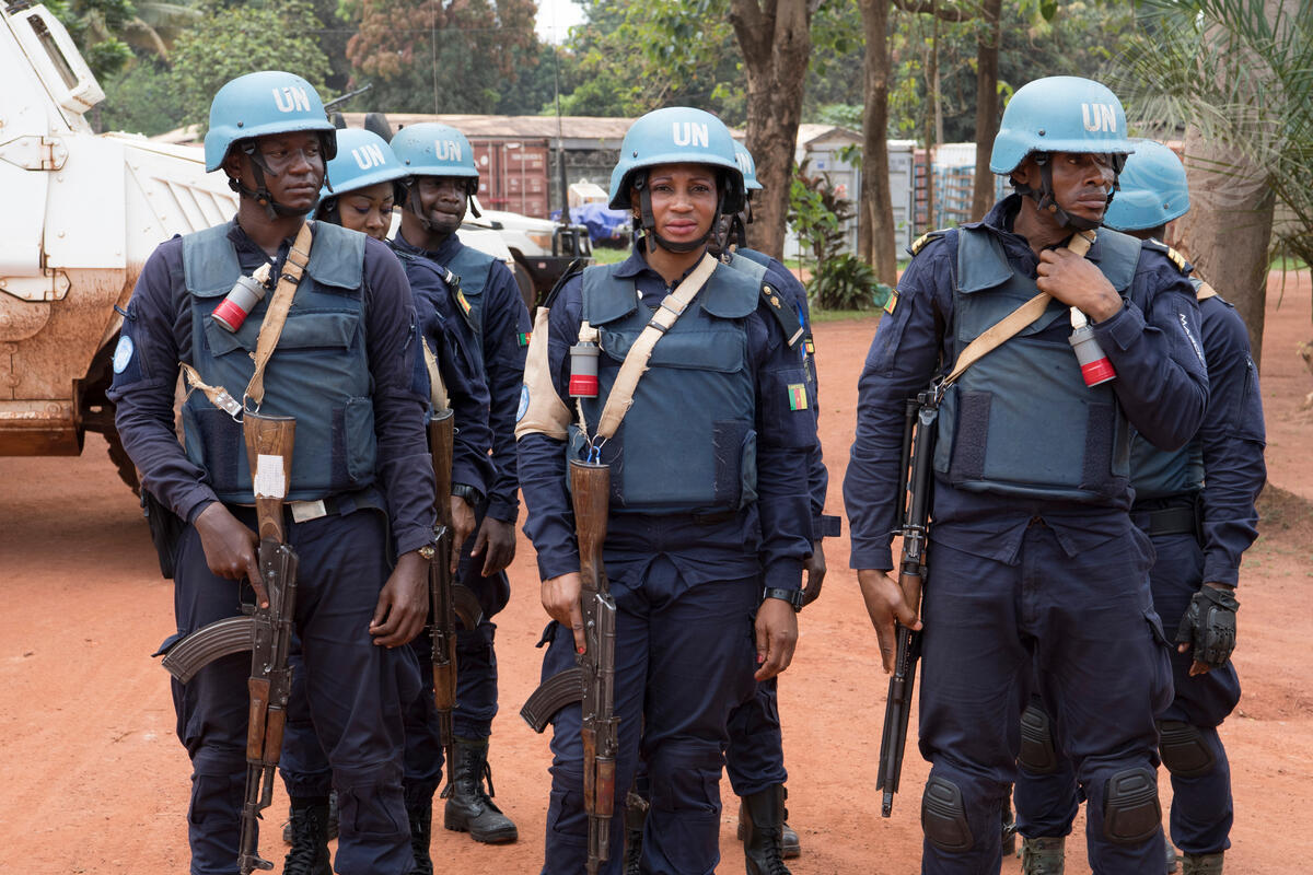 Military and police peacekeepers serving with the UN Multidimensional Integrated Stabilization Mission in the Central African Republic (MINUSCA) patrol the Muslim enclave of PK5 in Bangui.