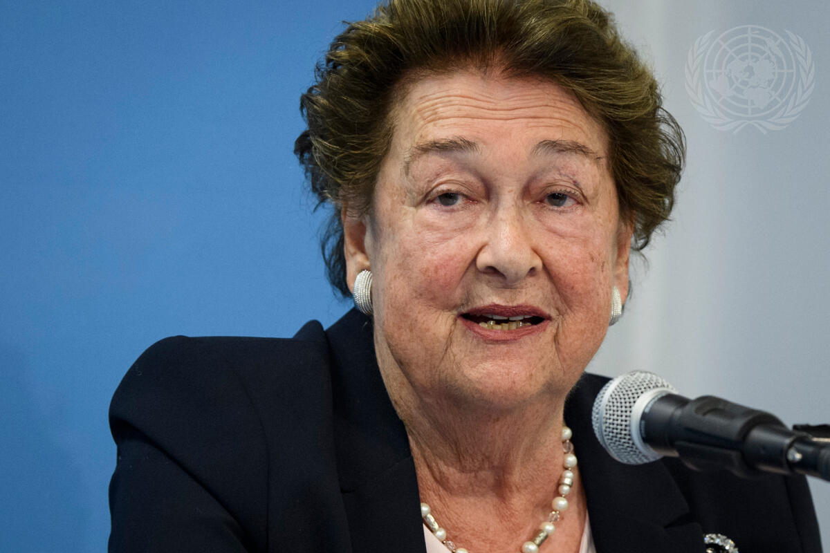 Dame Rosalyn Higgins, co-author of “Oppenheim's International Law: United Nations”, addresses an event introducing her to readers at the UN Bookshop. The conversation was moderated by Maher Nasser, Director of the Outreach Division in the UN Department of Public Information (DPI). Miroslav Lajcák, President of the seventy-second session of the General Assembly, delivered introductory remarks.