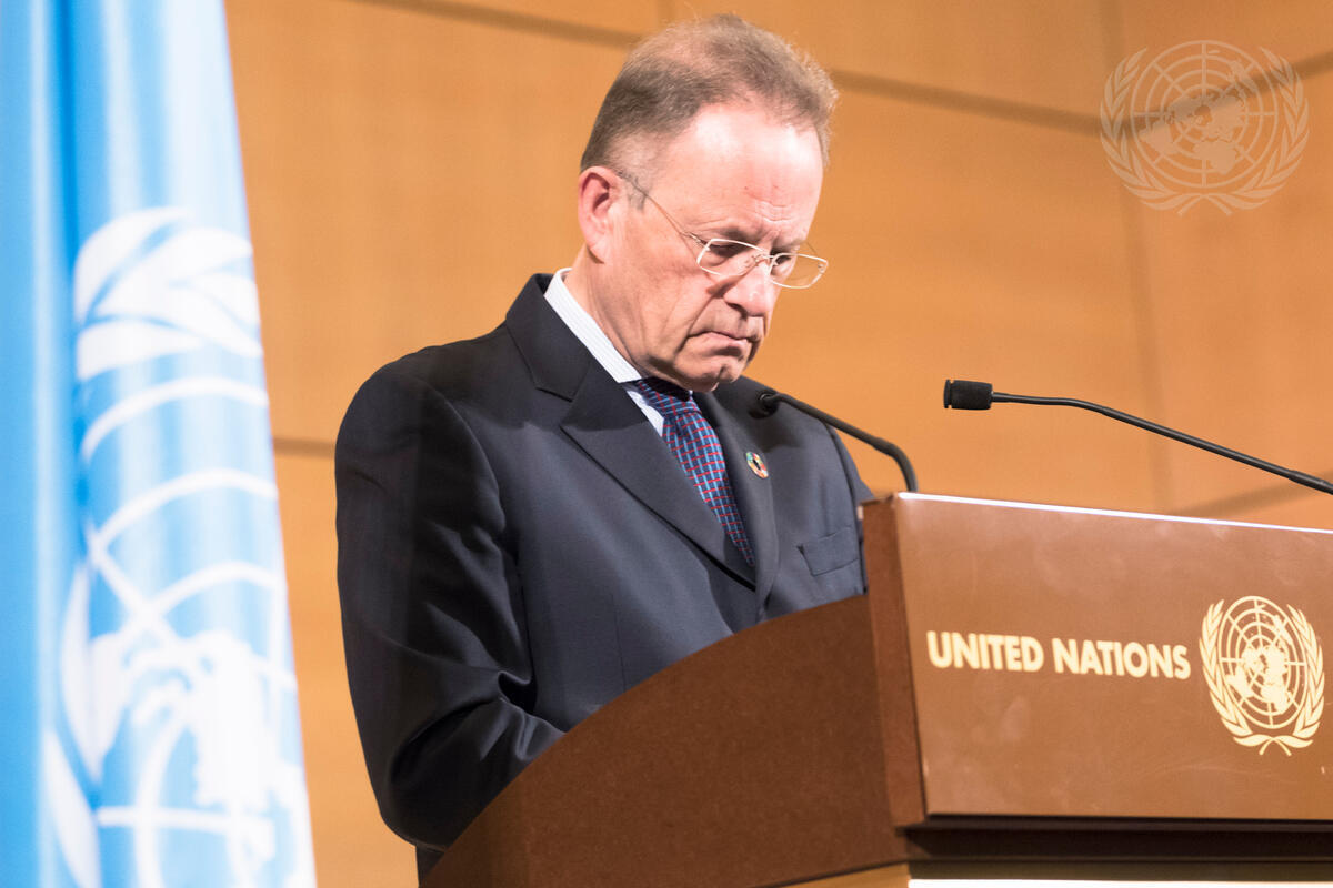 Michael Møller, Director-General of the United Nations Office at Geneva, observe a minute of silence on the occasion of the International Day of Commemoration in Memory of the Victims of the Holocaust (27 January).