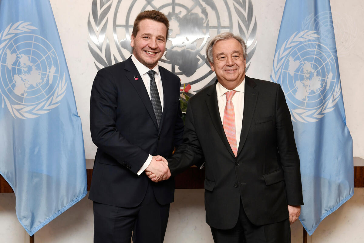 Secretary-General António Guterres (right) meets with Gudlaugur Thór Thórdarson, Minister for Foreign Affairs of the Republic of Iceland.