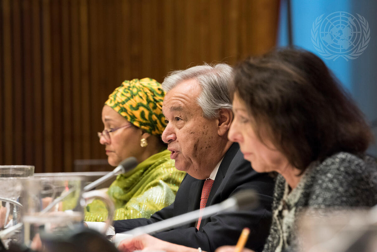 Secretary-General António Guterres briefs the Economic and Social Council (ECOSOC) on the repositioning of the United Nations development system for supporting the implementation of the 2030 Agenda. He is flanked by Deputy Secretary-General Amina Mohammed (left) and Marie Chatardová, Permanent Representative of the Czech Republic to the UN and President of ECOSOC.
