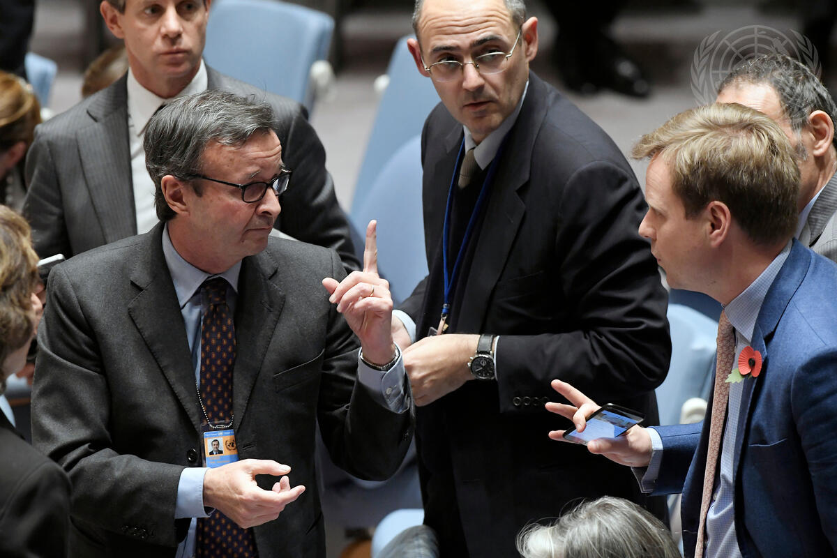 Sebastiano Cardi (front left), Permanent Representative of Italy to the UN and President of the Security Council for November, in the course of the elections in the Council.