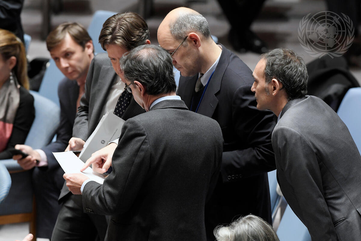 Sebastiano Cardi (centre, back to camera), Permanent Representative of Italy to the UN and President of the Security Council for November, in the course of the elections in the Council.
