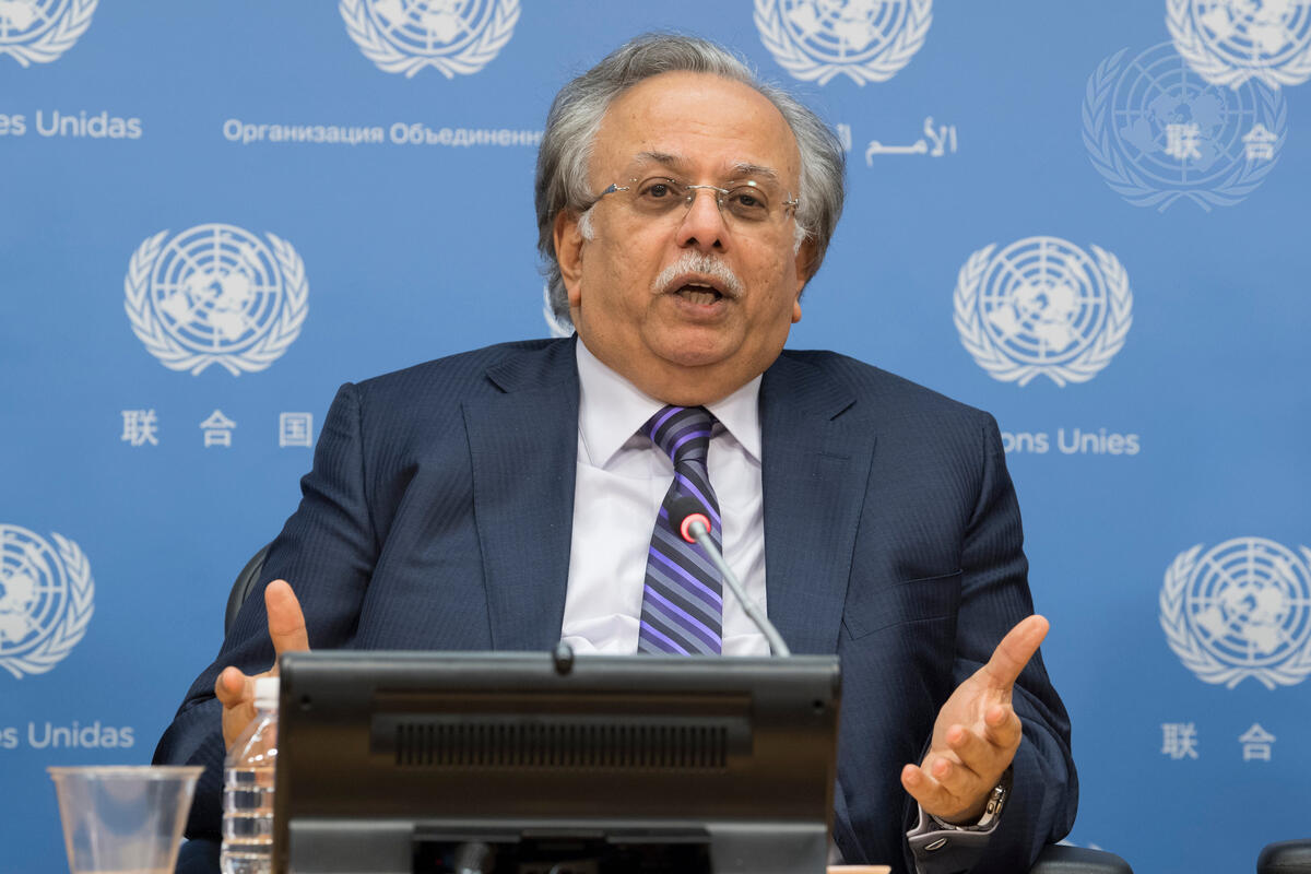 Abdallah Y. Al-Mouallimi, Permanent Representative of Saudi Arabia to the United Nations, briefs journalists.