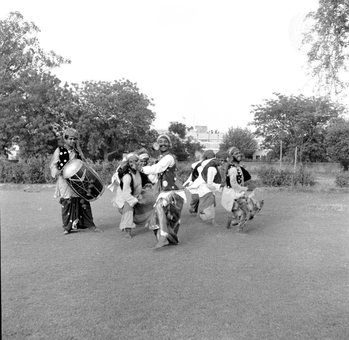 Village men performing a folk dance of the Punjab. April 1964.