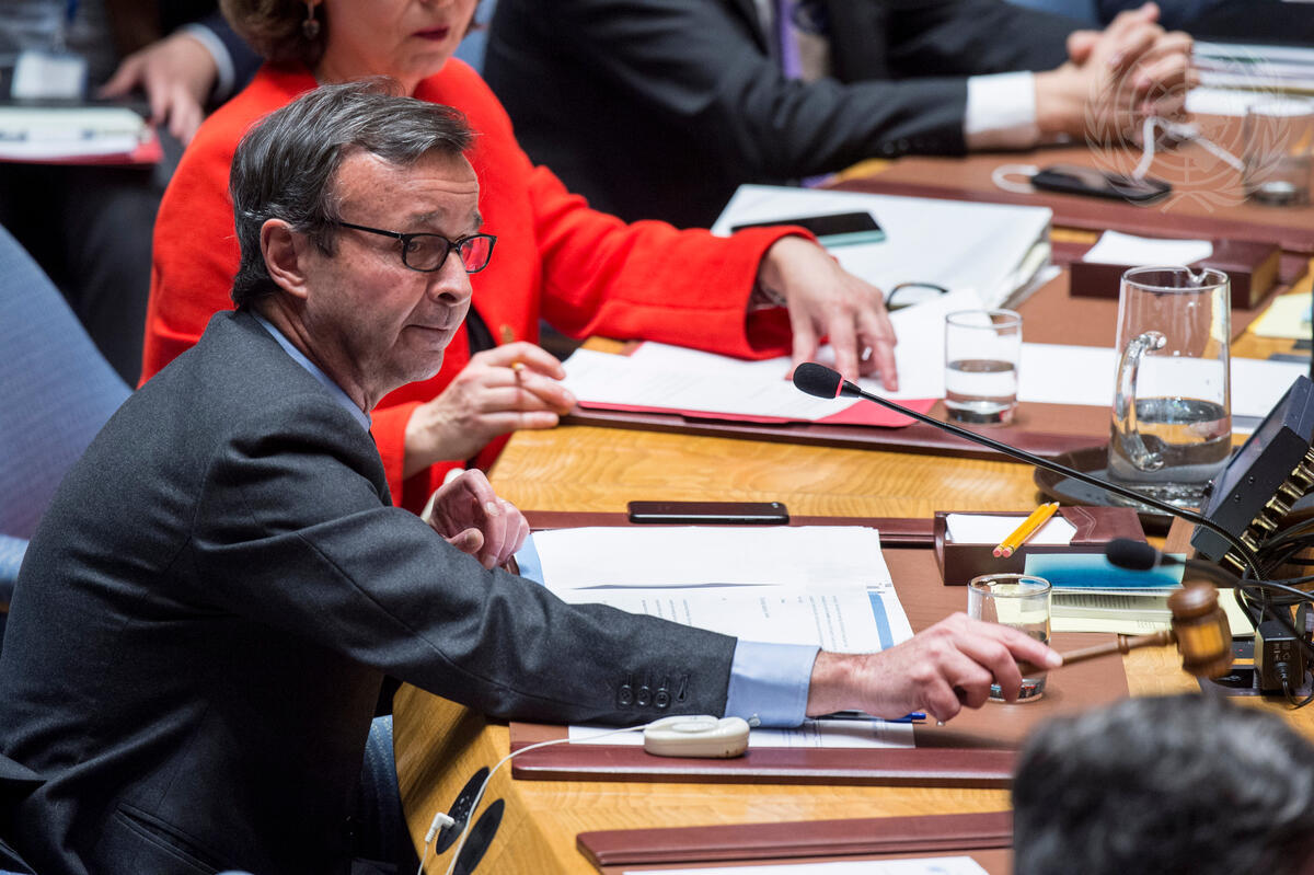Sebastiano Cardi (foreground), Permanent Representative of Italy to the UN and President of the Security Council for November, chairs the Council's balloting sessions.