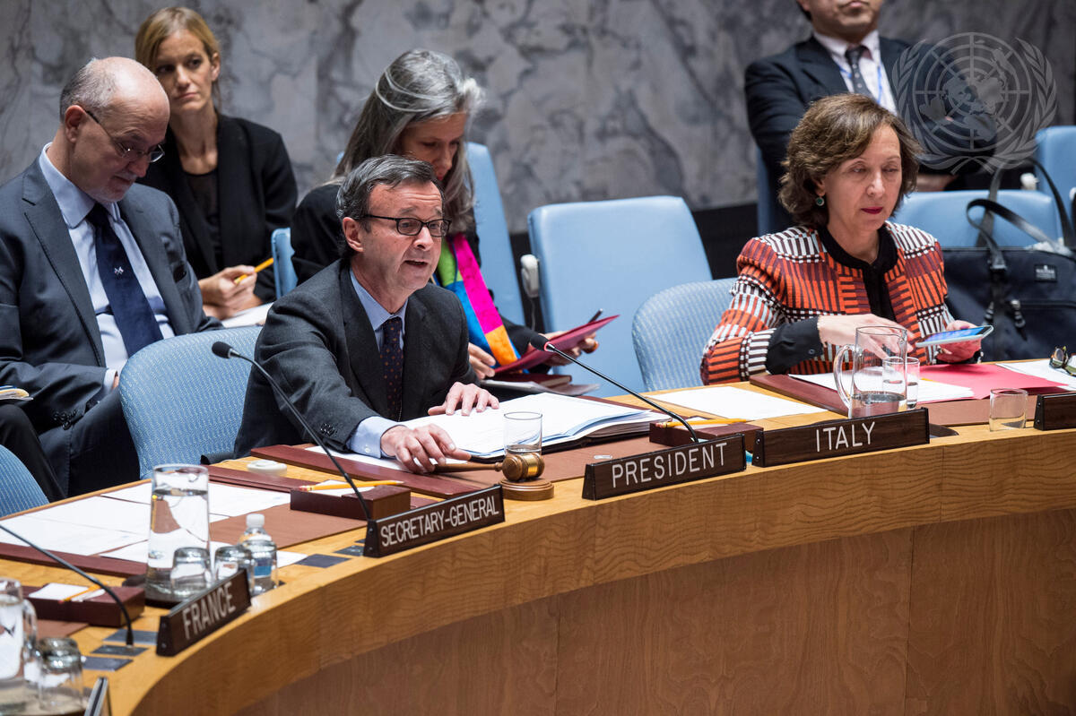 Sebastiano Cardi (front left) Permanent Representative of Italy to the UN and President of the Security Council for November, chairs the meeting.