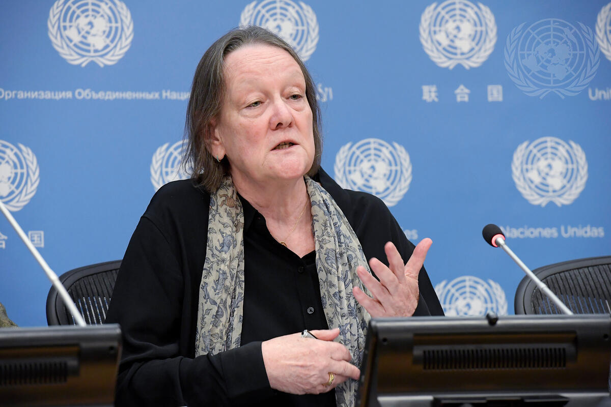 Jane Connors, Victims’ Rights Advocate for the United Nations, briefs journalists.