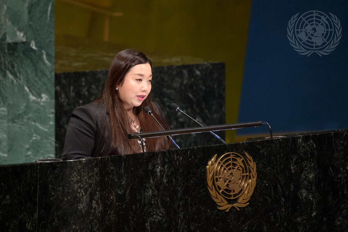 Muna Zawani Md Idris, Rapporteur of the First Committee, addresses the General Assembly meeting on the First Committee (Disarmament and International Security). The Assembly voted on a number of resolutions, related to general and complete disarmament.