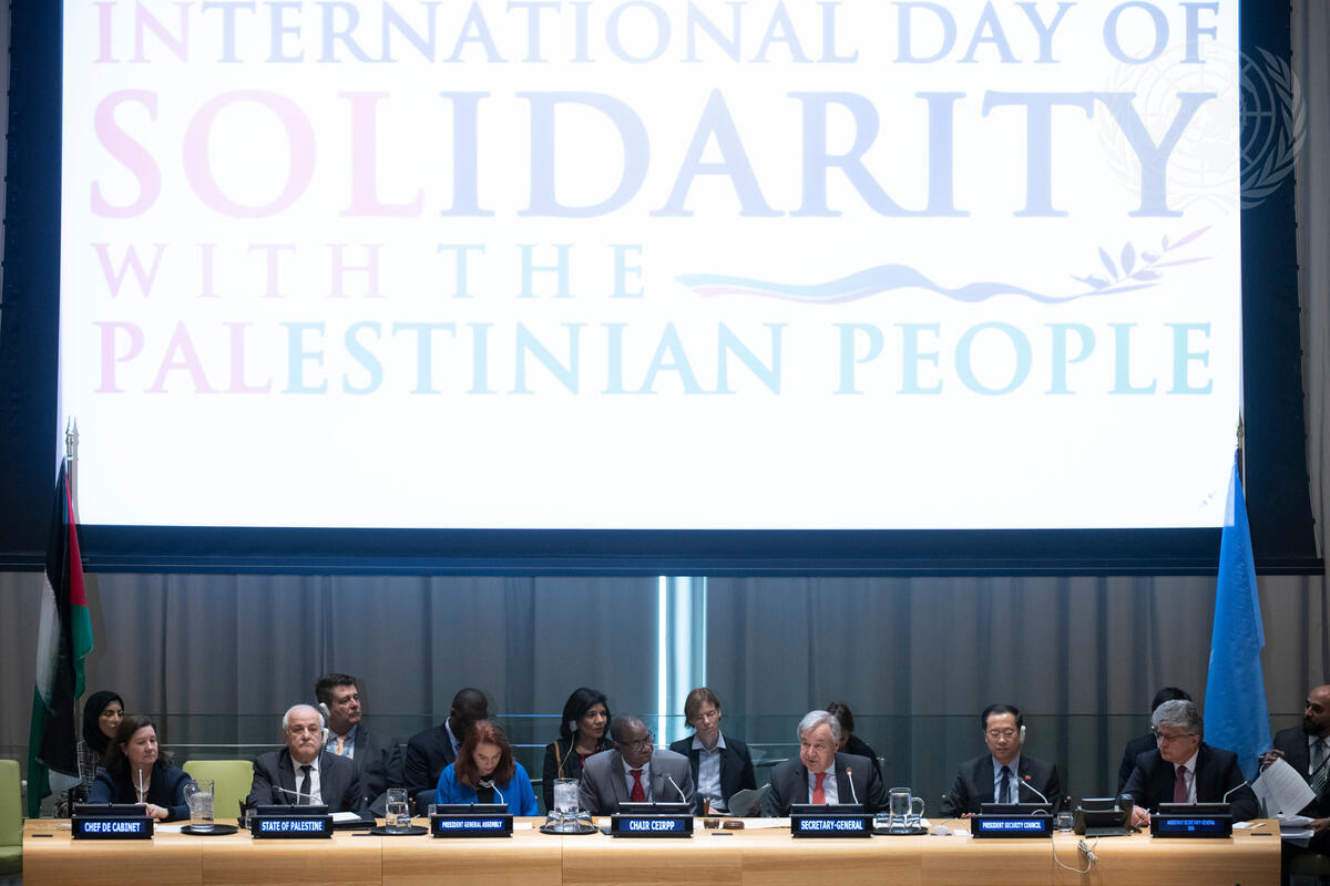 Secretary-General António Guterres (third from right) addresses a special meeting of the Committee on the Exercise of the Inalienable Rights of the Palestinian People in observance of the International Day of Solidarity with the Palestinian People (29 November).