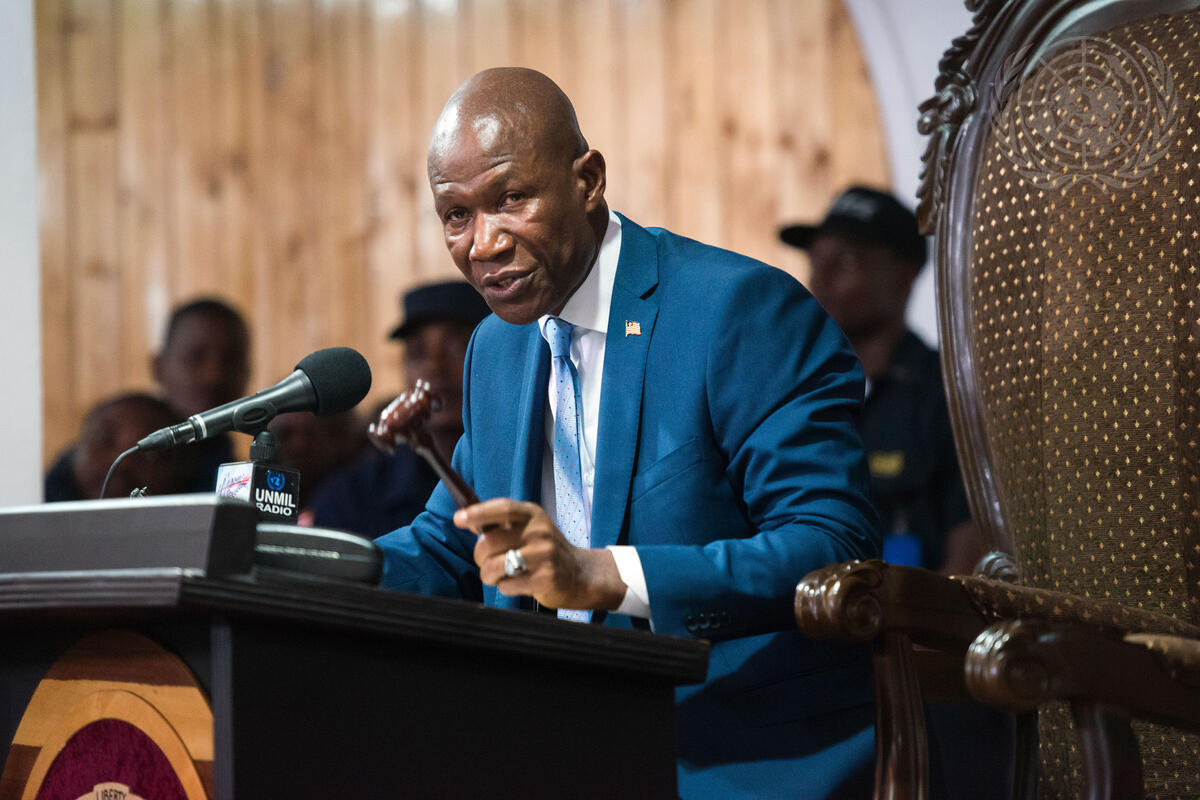 Bhofal Chambers, newly-elected speaker of the Liberian House of Representatives, chairs the first session.