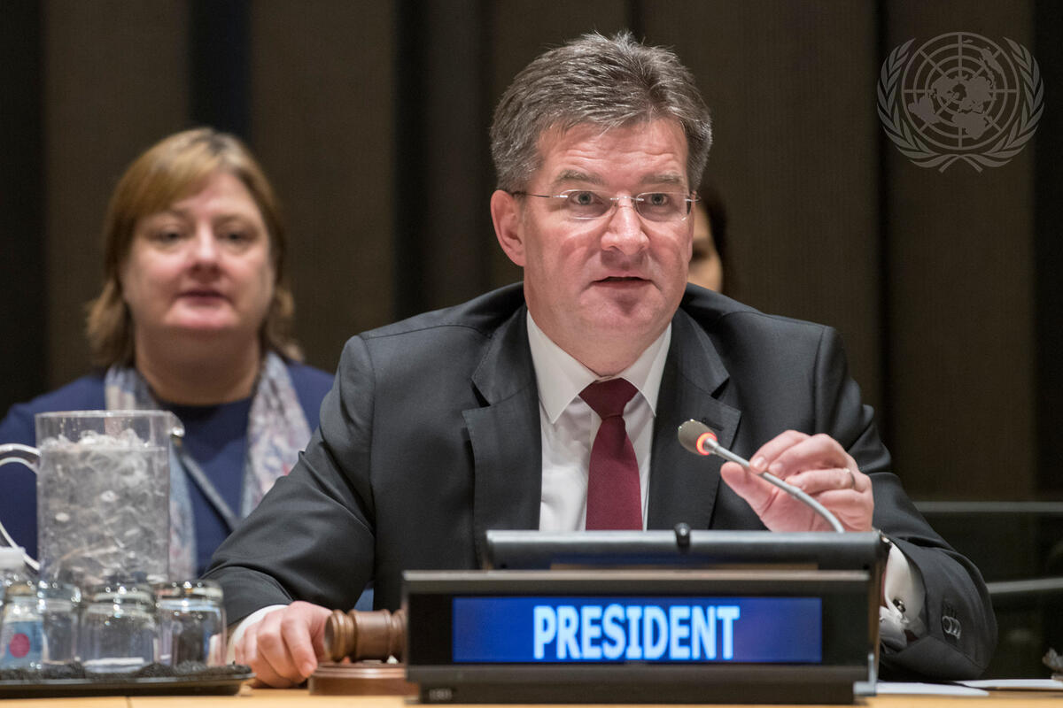 Miroslav Lajcák, President of the seventy-second session of the General Assembly gives remarks during the informal meeting of the General Assembly to hear a briefing by the Secretary-General on his report entitled “Making Migration Work for All”.