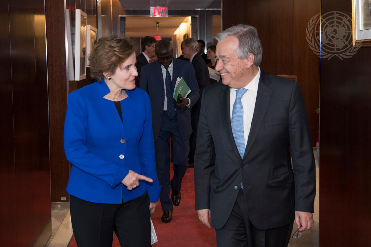 Secretary-General António Guterres (right) meets with Alice Albright (left), Chief Executive Officer of the Global Partnership for Education.