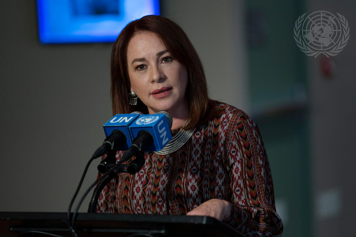 María Fernanda Espinosa Garcés, President of the seventy-third session of the General Assembly, speaks to journalists on her priorities after having taken the oath of office and assuming the presidency.