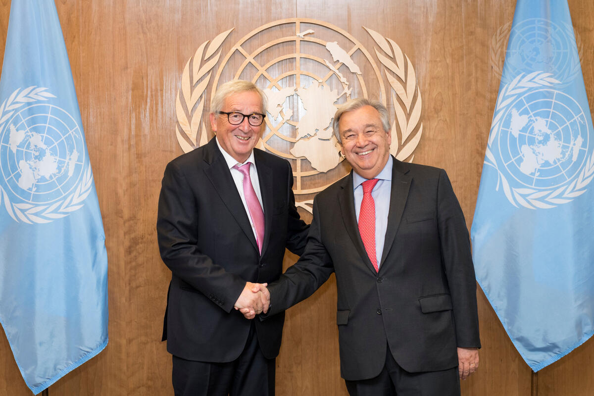Secretary-General António Guterres (right) meets with Jean-Claude Juncker, President of the European Commission.