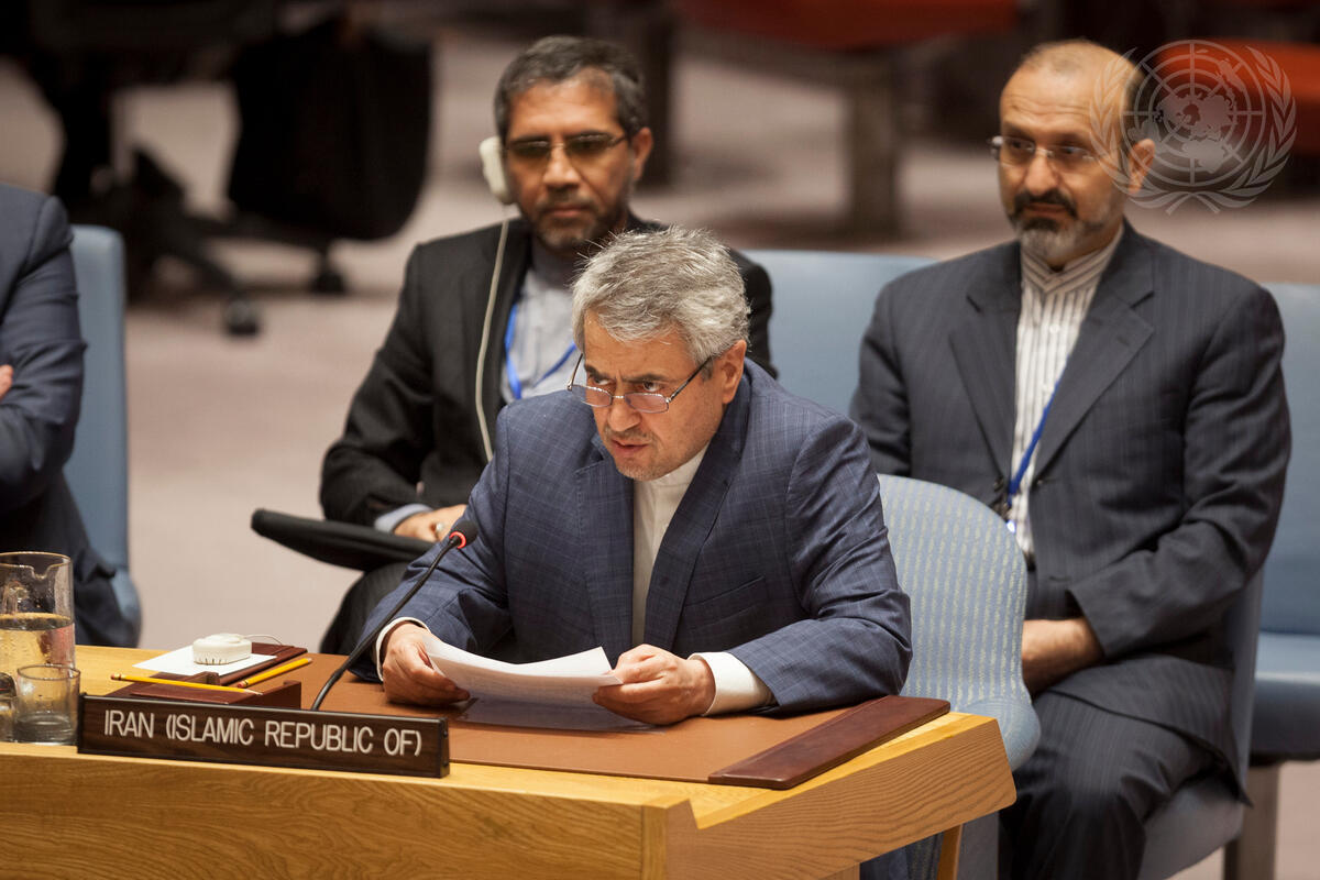 Gholamali Khoshroo, Permanent Representative of Iran to the UN, addresses the Security Council meeting on the situation in the Middle East.