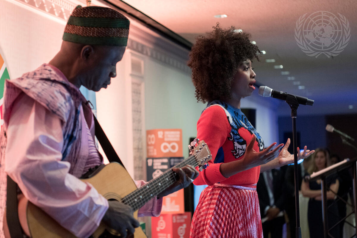 Inna Modja (at microphone), singer from Mali, performs with her band during the Sustainable Development Goals (SDG) Advocates Reception 2018.