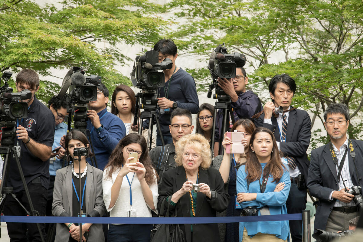 Video journalists and other attendees of the annual Peace Bell ceremony held at UN Headquarters in observance of the International Day of Peace (21 September).