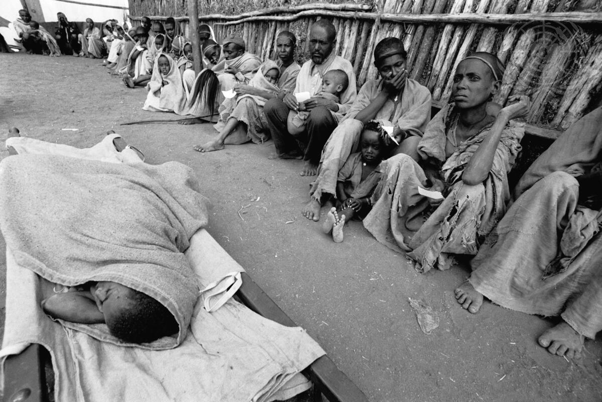 Victims of the current devastating drought and famine in Ethiopia, gathered to receive food and medical help at a camp in Korem, centre of one of the worst-affected areas in Ethiopia.